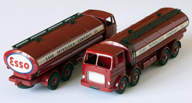 Two nice tankers. The last 'classic' Dinky 8-wheel tanker from March 1958. After this they were fitted with plastic petrol tanks. On the left is mine on the right is one belonging to a friend.