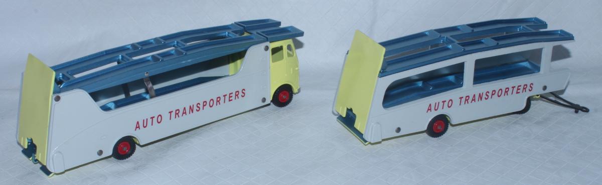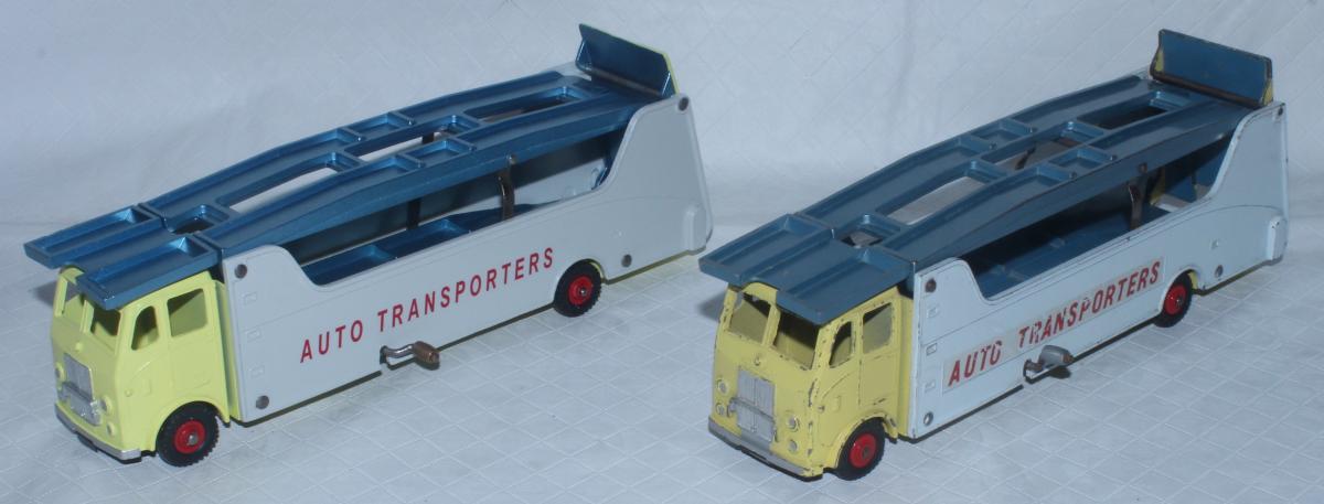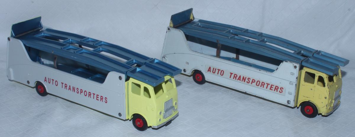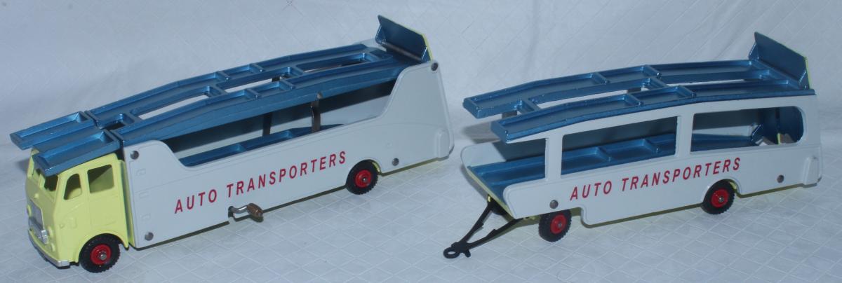 I moved my Display cabinets around on the weekend and took some photo's of this reasonably rare item I picked up on our local auction site here in NZ. Firstly the original with the correct plastic wheels, then the code 3 with matching trailer and supertoys hubs. Finally side by side.