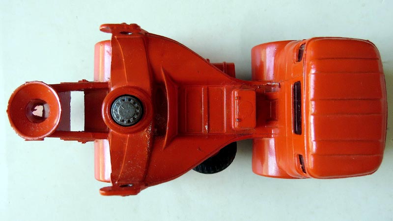 A closer view of the two rectangular areas behind the tool box that clearly shows the wear of the die/mould in that the later issue on the right the loss of the clear straight edges. There were also other minor changes such as the size of the cogs with the barrel as well as those in line with other Dinky Toys of the time, glossy base to matt base, raised rivets from dimpled rivets. Does anyone have a blue striped box with the title changed to CONCRETE instead of CEMENT? If so, can you share with us the details of the factory inspection stamp on the inside of the box lid AND the original price if the box has one. Kind regards Bruce