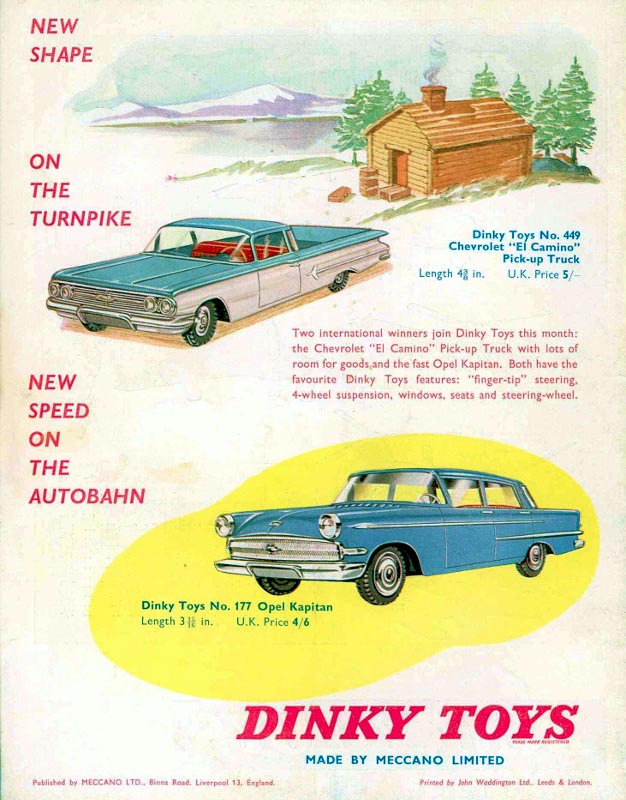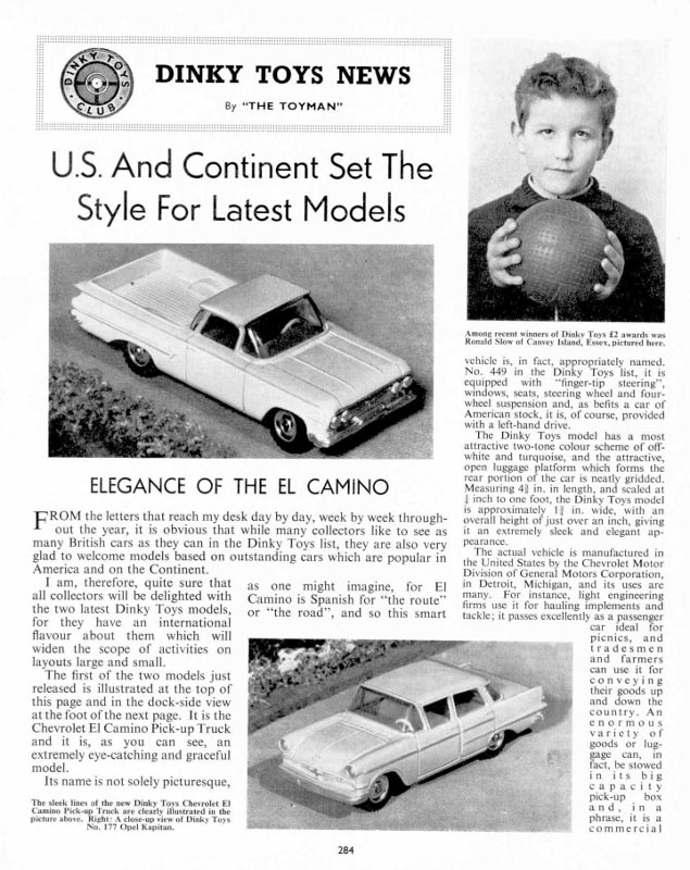 Greetings The following is an edited version of two posts on the 'Happy collecting milestone' that continues the second post (above) on this Thread. townie54 wrote: 'Good to see these El Caminos. I have the yellow from new in the '60s, and the red since but had not seen the others. I have the 263 Criterion with 5 different colour interiors and the 258 Fairlane with white and red. Incidentally just visited Dallas where the Sixth Floor Museum uses two repainted Dinky Fairlanes as escort cars in their assassination convoy diorama.' Dinkinius wrote: 'Many thanks townie54 for you comments. I like the El Camino, even though the model was aimed squarely for the American market with the use of the terminology 'pick-up truck', unless that is a term also used in the UK. Here in Australia, where it actually invented this type of vehicle in the 1930s when a farmer asked the Ford Motor Company in Melbourne that he wanted to buy a motor car that he can use during the week to cart farm stuff around, pigs, bales of hay, fertiliser, etc, and also to be able to take the wife to church on Sundays. Ford then came up with the 'Utility Vehicle' or just 'utility' a name that has been used ever since in Australia to describe a 'pick-up' truck. ' Kind regards Bruce (150) #666 20 June 2015