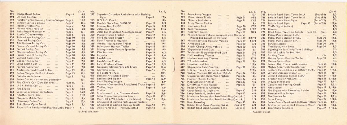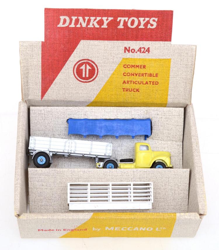 The Commer Convertible Articulated Truck was released in May 1963 with the back cover announcement in the Meccano Magazine. (See photograph 1) It was an unusual release, as it was certainly out-dated when it reached the toy stores. This may account for the scarcity of models on the market these days. Although scarcity in this case does not equate to value! The model consisted of two old and trusted moulds from the cab-chassis of the 25X/430 Breakdown Lorry and the trailer part of 521/921/409 and the plain trailer 551/951/428. The cab chassis dates back to November 1950 and the trailer even older to April 1948 as the trailer component for the Bedford 521. Under the guise of 424, with a brighter colour of a hideous, bright light yellow gloss and a silver trailer both with blue plastic hubs, these castings were to soldier on for another three years, and in the case of the trailer on its own until 1971 making this one of, if not the oldest casting of a Dinky Toys of 23 years unbelievable in this age when manufacturers are constantly deleting and adding new models. The model had a relatively short life of three years before being deleted from the inventory. It made its last appearance in the October 1966 Dealer Order Form although it may have appeared in the November and December Order Forms of which I do not have a copy. However with the model not being included in the January 1967 Order Form it can be assumed that the model had already been deleted within the factory, leaving only existing stock on hand by the many dealers. A Meccano Toys of Quality price list dated January 1967 does have the model listed with a price of 9/11. There were two different boxes used during the life of the 424 Commer Convertible Articulated Truck and images of these are below. Which came first I have no idea, but the box which was predominantly in red and yellow is less common that the green and orange version. In the closing months of the life of the 424, it does not appear in the First Edition catalogue for 1966 but it makes a mysterious return in the Second Edition issued after 21 July 1966 as one of those not illustrated at a price of 10/1. Then in the first edition of the 1967 catalogue, the 424 continues with its presence still not being pictured but now with a price that matches the earlier price leaflet of 9/11. With its appearance in the 1967 catalogue, but not in the January 1967 Dealer Order Form we are left with a quandary as to its deletion year. It may not have been omitted from the January 1967 Dealer Order Form due to insufficient stock being on hand although it may have appeared in later Dealer Order Forms of which I have none to refer until 1968 when of course the model has long been deleted. To provide an example Meccanos forward planning particularly for its overseas markets, take for instance the 1963 catalogue published for Australia. It was printed in England with a reference number of 13/163/100, which translates to January 1963 with a print run of 100,000. However, if you look carefully, one will see that the included price list (with the same print reference code as for the catalogue) includes the 424 Commer Convertible Articulated Truck a model that was not released until May. Also included was the 241 Lotus Racing Car that was also released in May. In fact, the January price list printing covered every model to be released in January, February, March, April and May. It also included the 139 Ford Consul scheduled for release in the UK in June with the notation that it would be available later. Then we come to models that were released in July 1963, 448 Chevrolet El Camino Pick-up with Trailers, and the six large Gift Sets, 121, 122, 123, 298, 398 and 400, and we find these also included together with their prices. The only model not included but released in July 1963 was the 944 Shell-BP Fuel Tanker. It was fascinating that even in those days when currencies were not market dictated, Meccano was able to include a price for all those models that had not even been released! The catalogues would have been shipped to Australia which would have been factored in, anything from three to four months, so that when the little Aussie kids obtained their catalogues, it would have been relatively up-to-date. Bruce (150) 20160510/920/1637