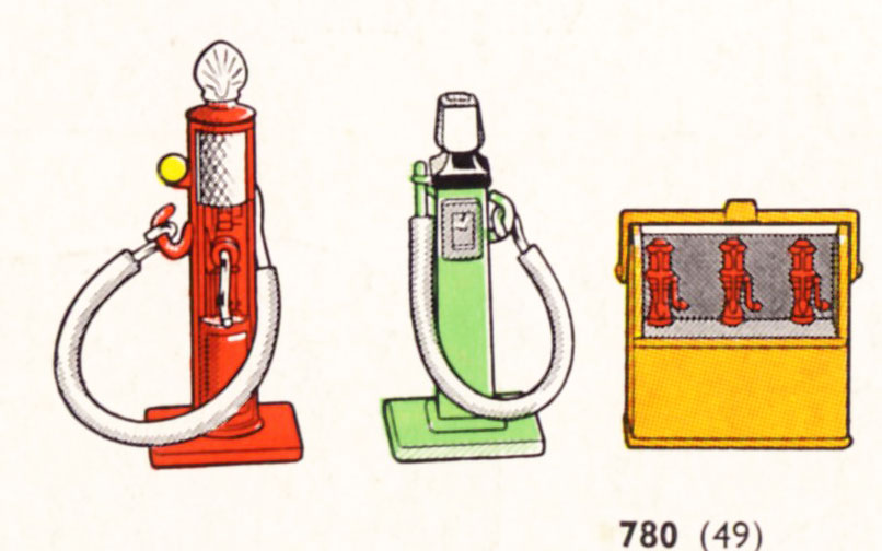 The same goes for the Shell Petrol Pump in the 49 set. I have two different examples, the handle mounted mirrorred for one. The one on the left matches the official picture in the catalogues, the one on the right is mounted differently. This case is better explicable - just mounted wrongly - than the Breakdown Car hook, because the very hook had to be produced mirrored itself for that. I don't know if that can be just a mistake. See pictures below. Kind regards, Jan
