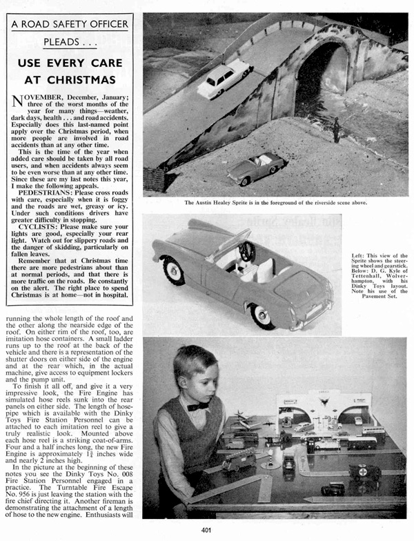 Hello Jan, and greetings to everybody from Australia, thank you Jan for another excellent post on one of your (and my) favourite topics, Dinky Fire Engines. By incorporating all the additional Meccano Magazine features, you really present a well-researched and interesting article, even though Dinky models from this period may not be your primary interest. I hope you will allow me to add a few further details about this model to your thread. As you are probably aware, the 259 Miles Fire Engine model, being introduced in 1961, was towards the end of the 'Spun Hub' phase of Dinky production when many of the then current car models were fitted with the standard Spun Hubs - but very few non-car models were fitted with them. This model is one of the few exceptions, in fact, the picture of the model on the fragile flap-ended boxes shows the model with Spun hubs - around 1963, they were replaced with Plastic hubs which were used until the model was discontinued.