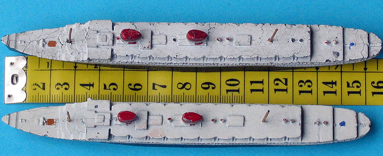It exceeded the German no. 51b Europa in size by 1,316 gross tons. Both of them were the only non-British ships in the range. Though belonging to the bigger ship models (152 and 165 mm long respectively), contrary to the Queen Mary (and Normandie) the Rex (and Europa) consisted of one single casting only. The single casting was supplemented by two separate masts of wire, inserted into the appropriate deck holes to complete the model.