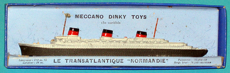 In 1935 the Normandie, another famous liner, modelled by Dinky France (no. 52c), took over the Blue Riband from the Rex.