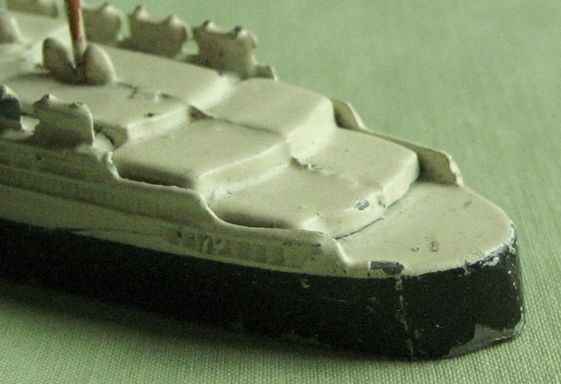 The Dinky Toys model of the Queen Mary was discussed already to some extent in the 'Dinky Toys of the Day' thread:http://dtcawebsite.org/dinky-forum/2-dtca-forum/1749-dinky-of-the-day? limit=6&start=126As a tribute to the launch of this iconic vessel, 80 years ago, I posted some pictures there, and John Beugels replied already with interesting information about the French export version. Creation of this thread will possibly concentrate otherwise scattered information and views regarding this model.Now I have a new case. Except for well-known variations as boxes, numbers, text cast underneath, and with or without rollers, I know of no other differences in the casting of this model. Soon after I took my two models of the Queen Mary out of my displays, however, I discovered that my examples show a difference at the stern, i.c. the early '534/Queen Mary' shows a ridge there, representing the railing, whereas this seems to have vanished on my later 'Queen Mary' version. Now I wonder if this is an incident, perhaps caused by finishing the model under different conditions, or is this perhaps really a structural casting adaption? The only way to know is that others inspect their Queen Mary models and see if their findings are the same.Two pictures in order to demonstrate. I hope they show the difference sufficiently:
