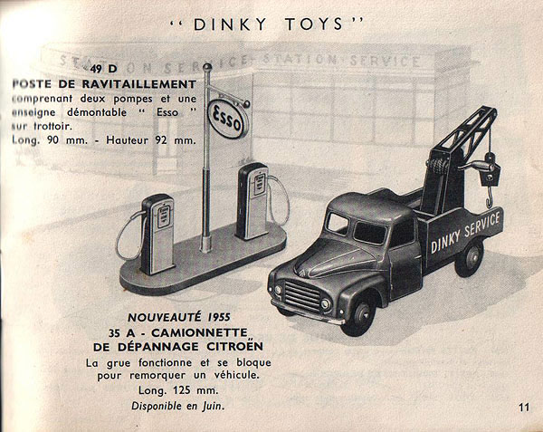 The reason may be that for some reason, the Studebaker wrecker could not be made any more (broken tool ?). When this happened Meccano had started working on the 35a Citron U23 dpanneuse which was still several months away. The 1954 catalogue still shows the Studebaker. The 1955 catalogue already shows the Citron which was issued in June as stated on the catalogue.The Ford was not planed it was very easy to make it to fill the gap. Every part was available at the factory, the only jobs to do were flaten the rear pannel and make a rubber stamp for the marking.I can not think of any other model with such a short life.