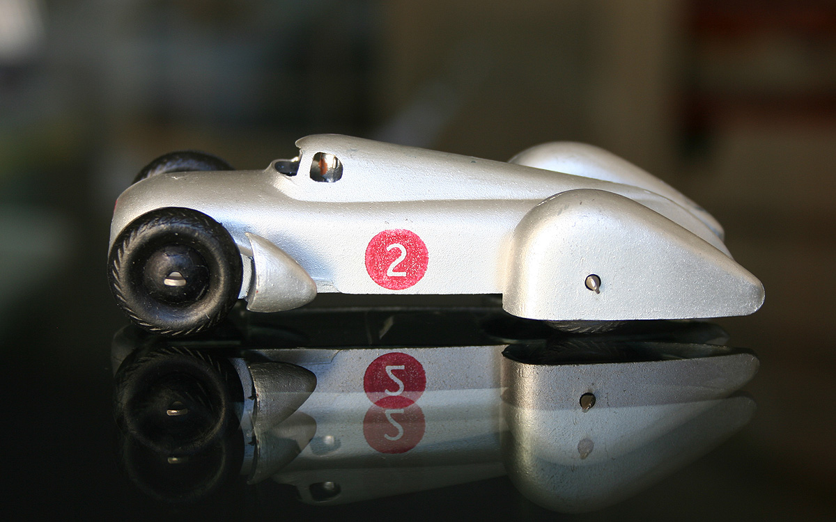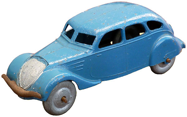The Peugeot 402 was also a streamlined model fitted with either smooth hubs and Dunlop tyres or solid diecast wheels. The early issued were without a baseplate, this was added later. Note the fine detail of the Peugeot Lion on the rear Wheel cover.