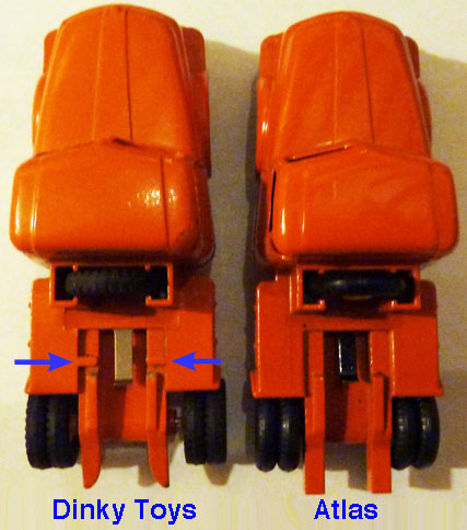 This is the latest Atlas issue (clic on the picture to see it in full length) The original Dinky Supertoys is my favorite Dinky. As many Atlas products, this is a poor reproduction with several errors.This is a copy of the first issue of the Meccano model with smooth cab ceiling, straight end of the chassis members; ridged front hubs and see through trailer beam.