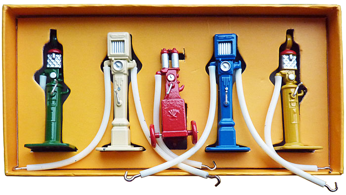 This is the last model issued off collection by Atlas. It is the French post war 49 set of petrol pumps. The hoses which are made of plastic instead of rubber are very elastic and will not remain in the box or even less with the nozel hanging from it's hook. This is an other very badly copied model.