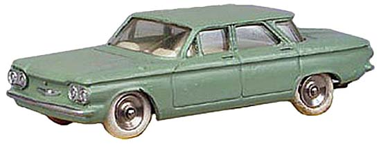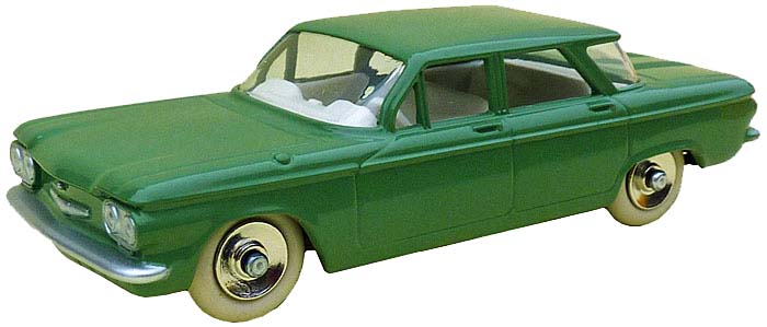 552 - Chevrolet Corvair in 'South African' finish. The guy who has chosen the colour has certainly never seen an original. Wrong green. The steering operates to the right only !