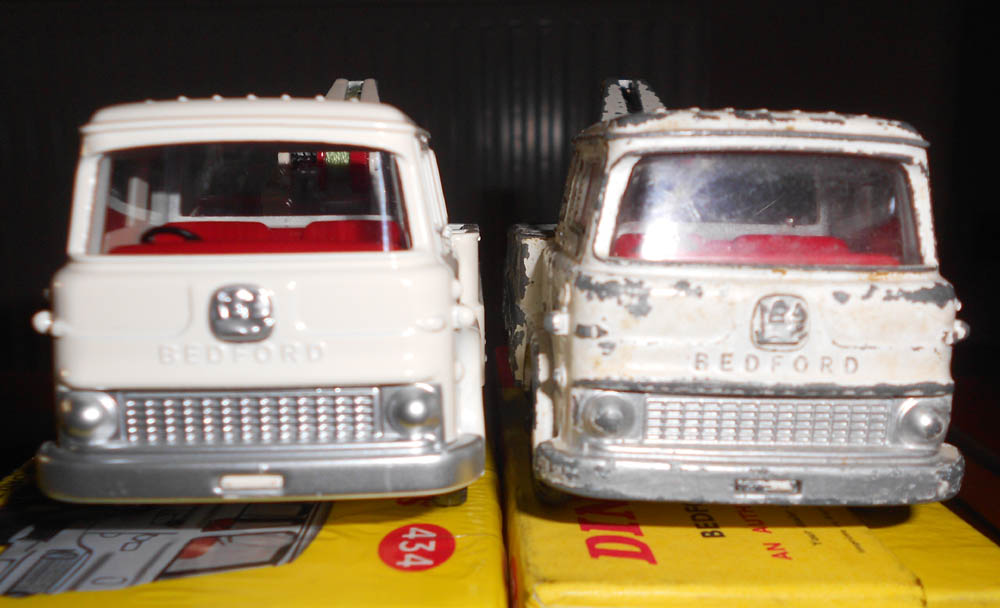 Well I had the Top Rank, the coal lorry and the dustbin lorry with solid green cab from new. Never really liked these later Dinky trucks and the coal lorry went a long time ago as the sacks and scales had no chains to stop them falling off! Still have the dustbin truck with its little bins. I bought the yellow tipper recently mint boxed for 45 but it soon found its way on to eBay, closely followed by the Atlas orange one. I kept the Top Rank as I was given a red 589 with the same base back in the day and kept them as a pair, now joined by the Atlas Autoroutes version.