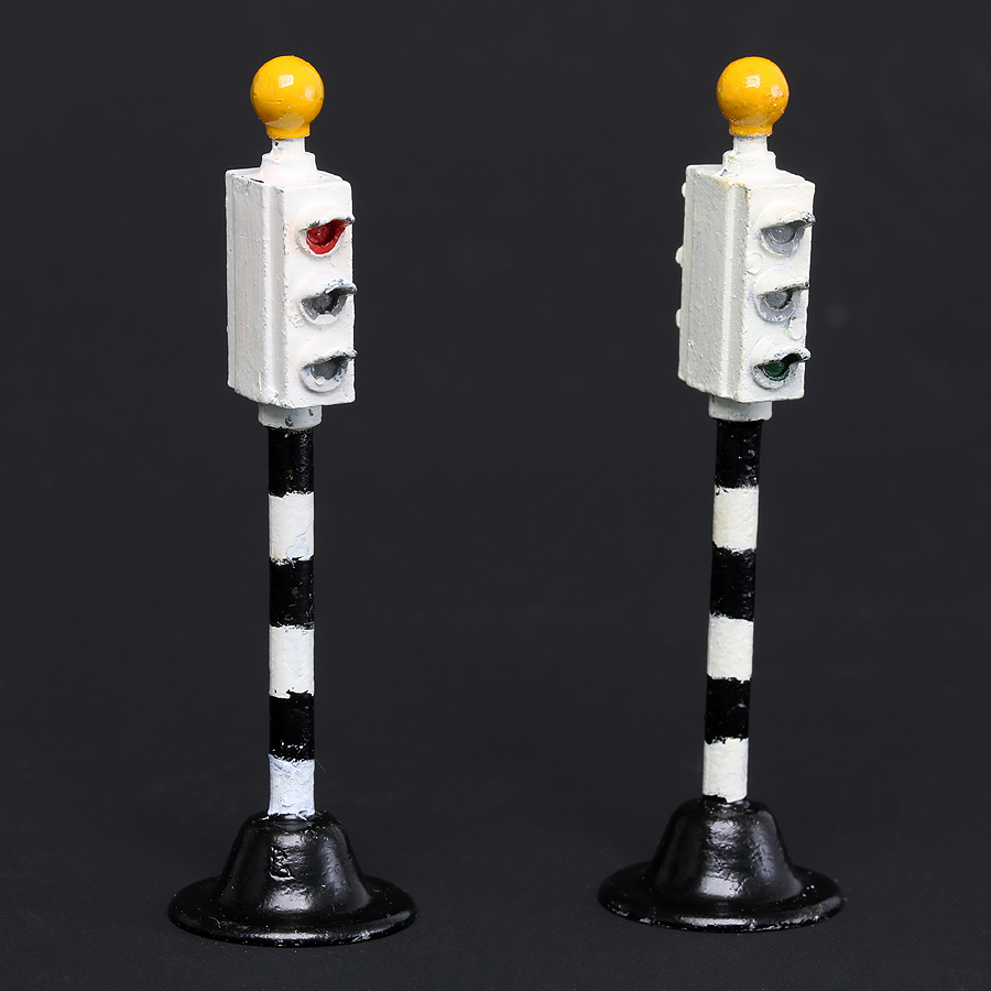 This box is clearly a post war box, it does not have a 50xxx number however.It is stated that only the four face traffic signals (robot) were reissued after the war. This does not appear to be the case.Both two-face signals pre-war shared the same sales number, 47c. Is the use of 47Y an attempt to create a different catalogue number.I am not aware of this item being listed anywhere else or appearing in the catalogues.The box contains 10 two faced and one each three and four faced signals.Two of the two-faced signals are a different shade from the other 8.They were purchased in 1984 from a dealer in Sydney. Any more information welcome, I suspect that three and the other two faced signals wee also available briefly post war. I have come across too many in very good shape for them all to be pre-war.