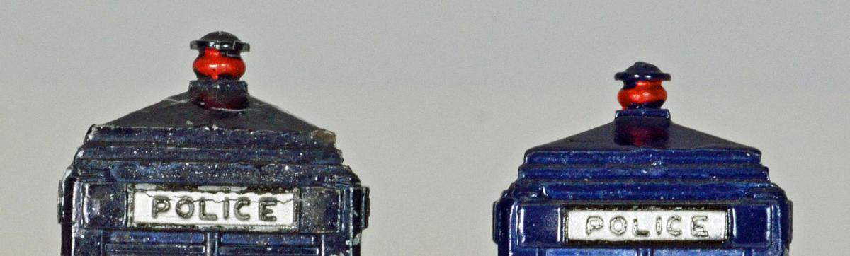 Jacques-- I have several photos of the pre-war box, both alongside the post-war version, and also by itself. Would you like me to send you these? It does now appear that for sure, there was at least another die made for the Police Box, and now we have to wonder was it done right after the war, or earlier? Another Dinky Toys mystery! And a Happy New Year to you!! Best regards, Terry