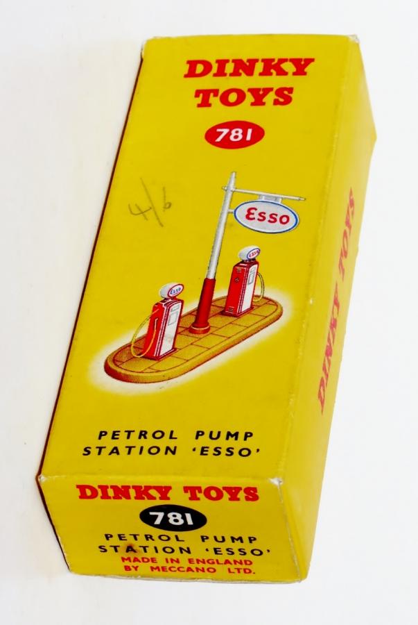 /] The 781 Petrol Pump Station Esso was finally deleted when it made its last appearance in the Agents Order Form for February 1965. Its days had been numbered when a redesigned island petrol station with an attendants booth was launched in mid-November 1960 in the colours of Shell (Sales No. 782) and BP, (Sales No.783). Please note, the PDF File as well as Ramsays British Diecast Catalogue has 1962 as the deletion year for the 781 which is incorrect. The Richardsons large tome The Great Book of Dinky Toys has 1964 which is also incorrect.