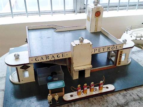 When I was small my uncle who worked at Libertys gave me an Art Deco style garage perfect for Dinkys. It had a central office tower with golden ball atop. Two side curved bays for showroom displays. A rear ramp, and rooftop parking, and a moveable rooftop tower with clock face and flagpole. I think he got it from Hamleys as closeby to Libertys. I have seen one or two since. Not sure if a kit, ready assembled or just plans to make your own. Anyone know? I attach a recent photo of one if it loads.