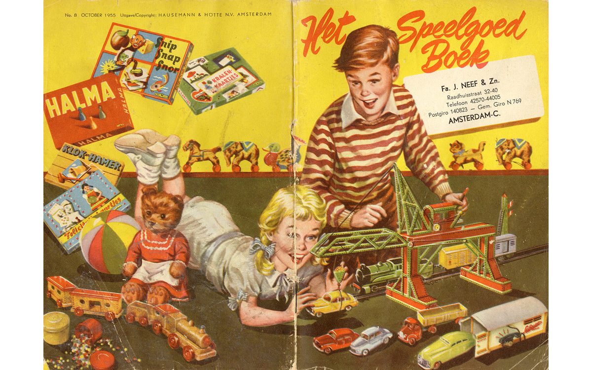 The Dinky Toys range of the 1930s, 40s and 50s has not been very well supplied with garages and related maintenance equipment, although some petrol pump stations were avaible still. The 1930s saw the no. 45 Garage and the no. 48 Petrol Station, but post-1945 there were no similar equivalents available anymore. In the Netherlands at least two firms jumped into that hole in the market in the 1950s and supplied the children playing with Dinky (and any other) Toys with garages, pump stations, car bridges etc. Although they were suitable for general use, both of them, the official Dutch Meccano agent Hausemann & Htte and the producer WICO of Nieuwer ter Aa (South of Amsterdam) explicitly mentioned and recommended such accessories for the use with Dinky Toys. Hauseman & Htte had their own brand of small scale mainly wooden toys, Mini Toys. They were advertised in their annual Speelgoedboek (Toy Book), in nice colourful illustrations showing the garages etc. in combination with current Dinky Toys. Wico started its range in 1953 and made an endless range of various wooden garages, all based on the same construction principle. At the very moment of writing this it crosses my mind that it would probably be interesting to write a short article on this for The Journal. So Ill keep this contribution short and restrict myself to a couple of striking illustrations only. Kind regards, Jan