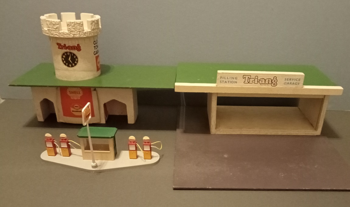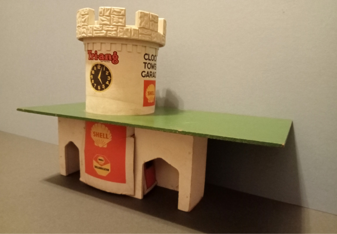 That is a fabulous item! I in turn wonder if members have ever encountered the Triang Tower Garages item pictured. (No, I don't have one -- that would be an unimaginable dream since they must be very rare.) As can be seen, this garage was supplied complete with the Dinky Shell and BP gas pumps, making it practically a Dinky Toy. It must have been released after Lines Brothers acquired Meccano Ltd., and also after Spot-On had been shut down (since there were different Shell and BP pumps previously in the Spot-On range!). That is a fascinating detail, and I also find this garage interesting because as a boy I owned a Triang castle, which I used with Britains Ltd. knights. The orange roofs and turrets on the towers were identical mouldings to what they used in this garage!