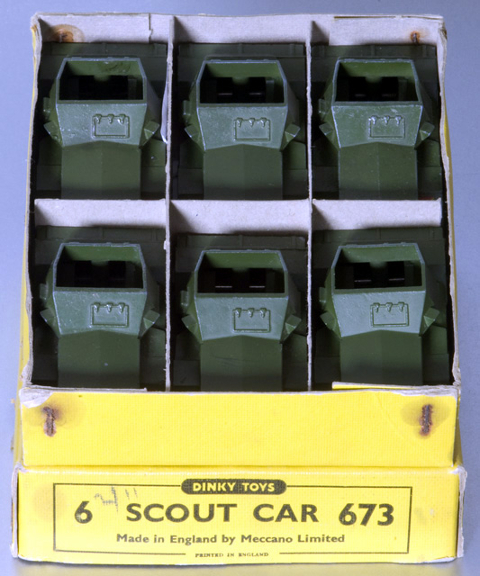 Six 673 Daimler Scout Cars which I bought as a full box about five years ago, this is quite a difficult box to find and should contain the earliest scout cars which do not contain a driver.Dave