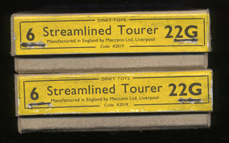 It would be interesting to see your colour variations and try to find siblings for comparison. Meanwhile my single label prewar example is not the best - the code number has been eroded off the bottom of it. But I'll try to find some other images of conspicuously prewar models with this type of box...