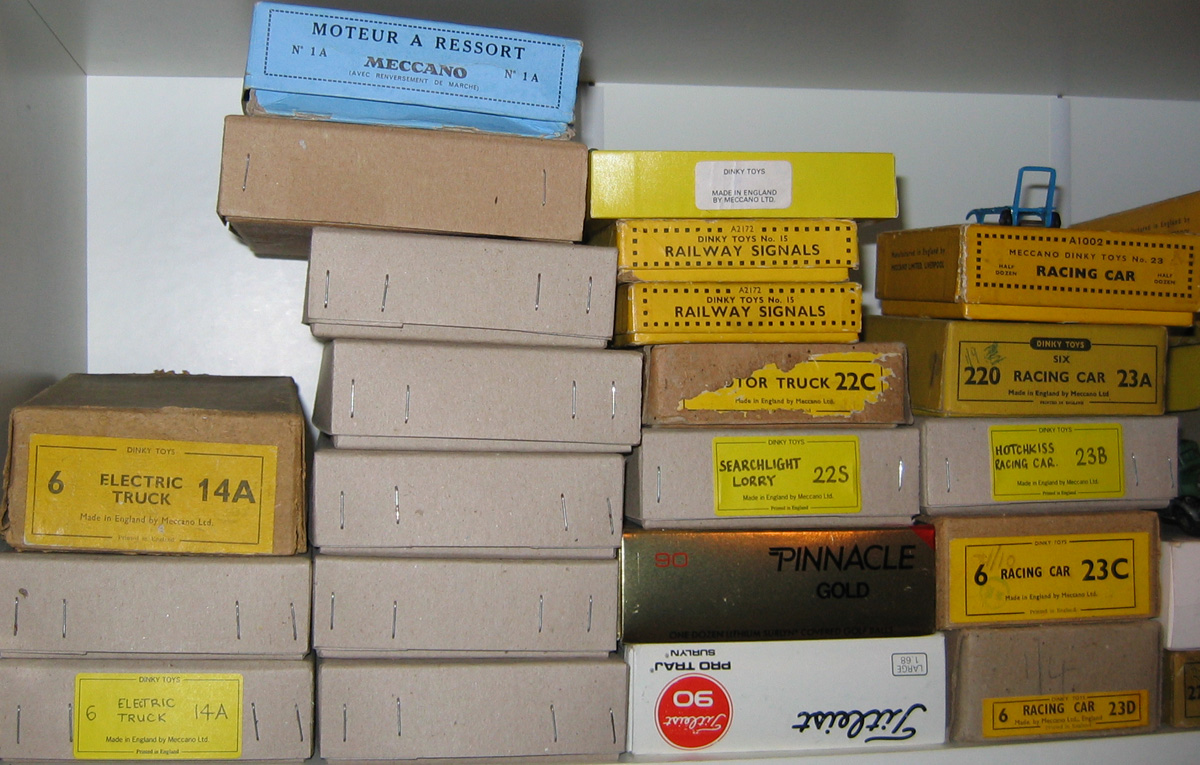 That is a really superb trade box collection, David. Congratulations with the result of what must have been a long, painstaking and critical process of searching, tracing, collecting etc.! I do not collect trade boxes, just the odd one that comes along if it's nice and inexpensive. For the record I post some pictures below. One of H.M.S. Nelson, because ships have my special attention. The ones below that one are snapshots that I took 16 years ago from a UK collection. I guess they are not as bright as yours, but it may be an interesting documention, a check for trade box collectors. This collector also introduced (cardboard) spare boxes for models that are waiting for an authentic trade box to be found. Kind regards, Jan