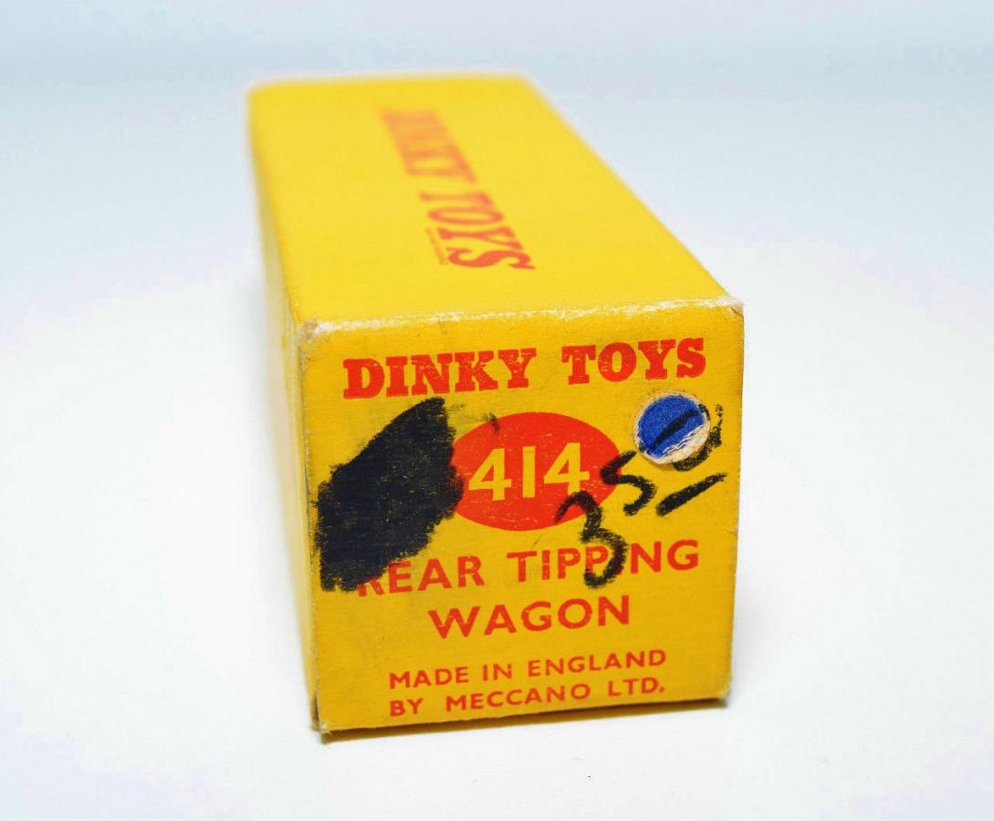Where or rather when does this box come in ? Certainly after the dual numbering box before or after the 414 box ?or as it is the cheapest box (printed in a single colour) is it the latest box after the red / yellow box ?Can it be dated at 1957 when the Dinky Toys logo changed from straight up letters to slant ?