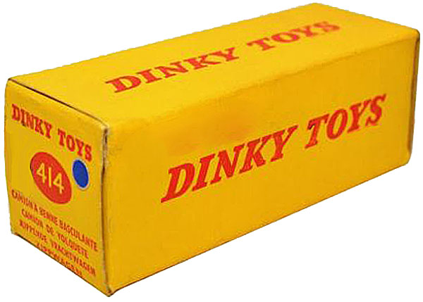 Jacques This box has caused me some concern. Although it has a blue spot, and the price may be genuine, my immediate reaction is that it could be a careful forgery. I just thought the fold with the upper photograph was not sharp as it should be. Perhaps you may have seen similar folded boxes that are genuine during your years of researching Dinky Toys so I passed it on not wishing to make any comment that may influence your analysis. I also noticed the italic printing on the sides and block on the ends, which is a puzzle, unless the contractor was not provided with explicit instructions, so they used 'artistic licence'. The price may be a guide, whatever currency it is! The box is actually on eBay right now, as part of a seller's shop stock, 'dinkycorgitoys' who lives in The Netherlands. You may be able to check it out, being 'in the neighbourhood' so to speak! Kind regards Bruce (150)20160314/834/2220