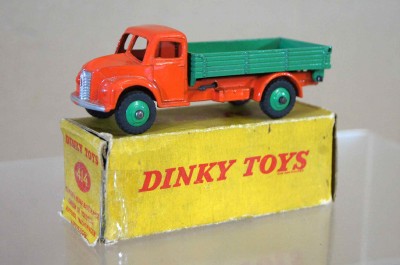 Bruce, I have asked the seller for a better picture showing the end flaps which are probably in a poor state with scribelings etc... On this box, the words Dinky Toys on the large side are in block letters contrary to the box for the 414 tipping wagon. It does not make sens as it is post 1961 and the slant logo was used from 1957 I have searched the Vectis data base but I could not find a plain box there.