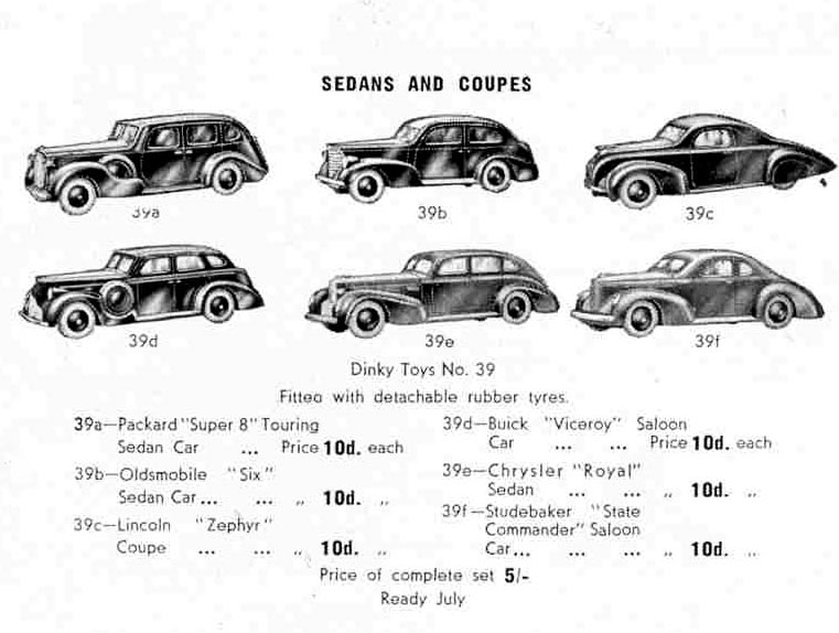 The Meccano Magazine for June 1939, announced the arrival of six new models in a new 39 series of American sedans and coupes, with them being available the following month.