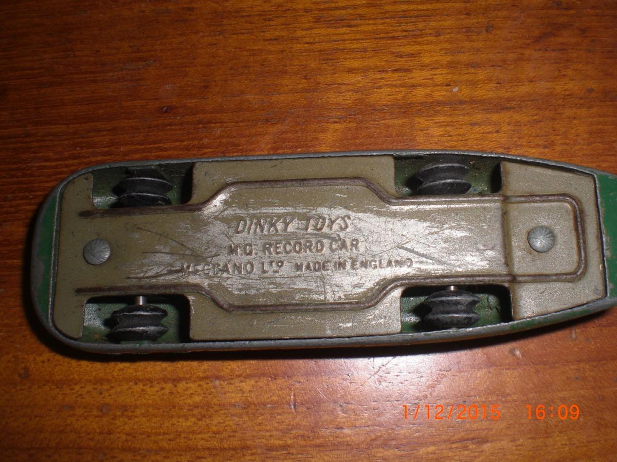 Vectis sold some MGs with the following descriptions : Thin axles, smooth black hubs, black smooth tyres, dark green base plate, marking ? Thick axles, black ridged hubs, smooth black tyres, tin plated base plate, marking M.G. RECORD CAR Thick axles, chrome ? hubs, smooth black tyres, black enamelled base plate, marking M.G. RECORD CAR These variations are most peculiar, can anyone confirm that they have been made by Meccano ? Thanks and regards Jacques