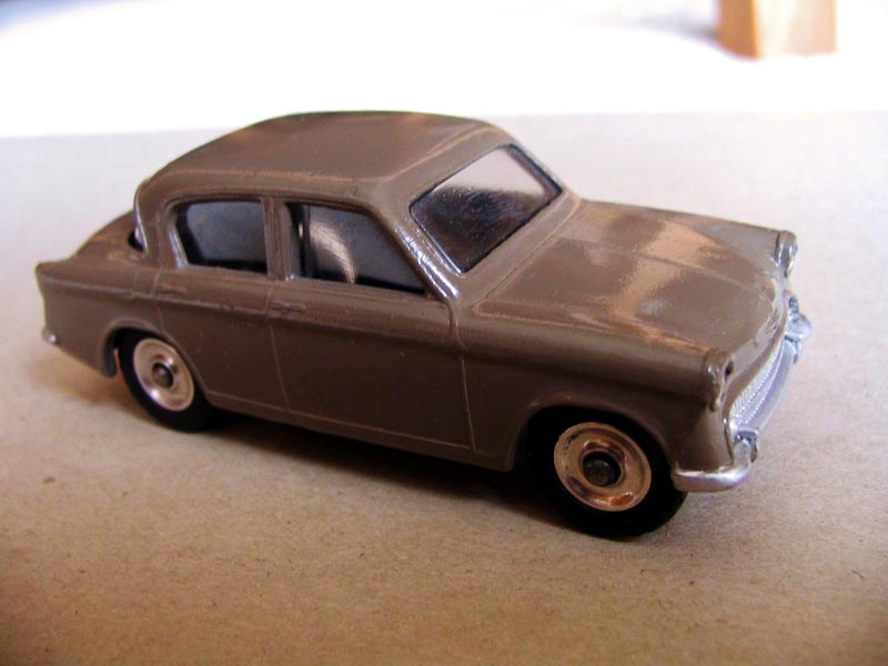 Perhaps the most difficult example to locate are those with turned aluminium hubs, so expect to pay a premium price.Here is my 1958 Hillman Minx Series 2 in Antelope Brown, and next to it is a Dinky version of my old car crafted by a good friend Paul Mc. He tried to match the colour as best as he could and although not quite, still I really like the little fellow!