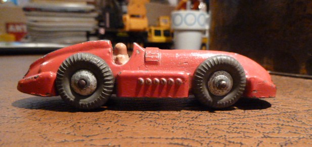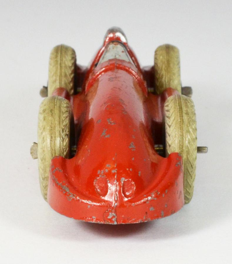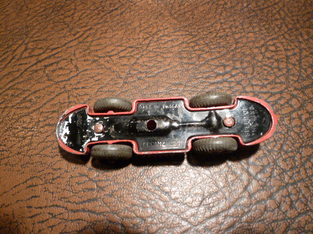 I just received a very nice early post war version of this record car, and am very excited to share it. I bought this a couple of weeks ago, and when I saw it listed, I made a quick decision that I had to have it, as it was a bit unusual. It has to be a very early issue right after WWII as it has both smooth wheels and white herringbone tires. Another likely early indication is the driver....most of these I have seen tend to be tan or light brown in color. This one is black, and I am sure it has not been re-painted. The overall condition is very good, with some surface wear and a few chips, but I am excited to find another nice post war example of the 23 series of racing cars. Best regards, Terry