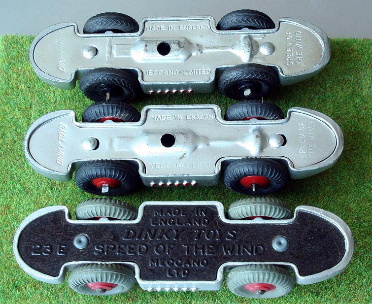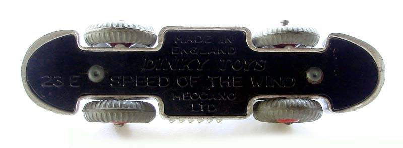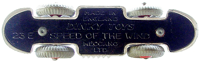 Slightly better, but not by much. This baseplate was a result of the re-numbering that took place in 1953/54. 23e Speed of the Wind became 221 and a new, mottled baseplate with model-name and model-number (still 23E!) was attached, following the same design pattern as the new 23-series Racing Cars (Alfa, Ferrari, HWM, etc. ...) Regards Walter