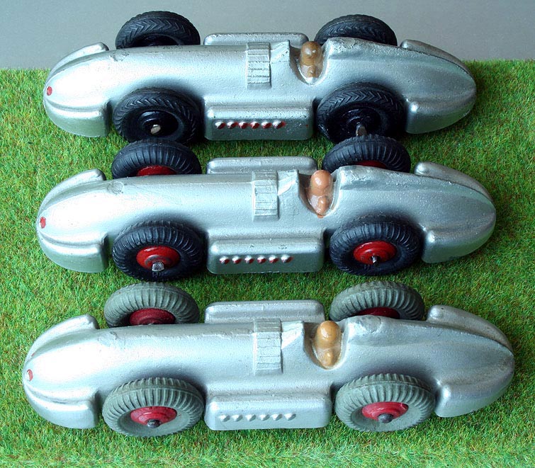 Hi all, I checked my silver post-war examples of the Speed of the Wind and these are the results (top-down = earlier-later). Note the differences in hub colours, tyres, axle ends, base plates and shades of brown of the driver.