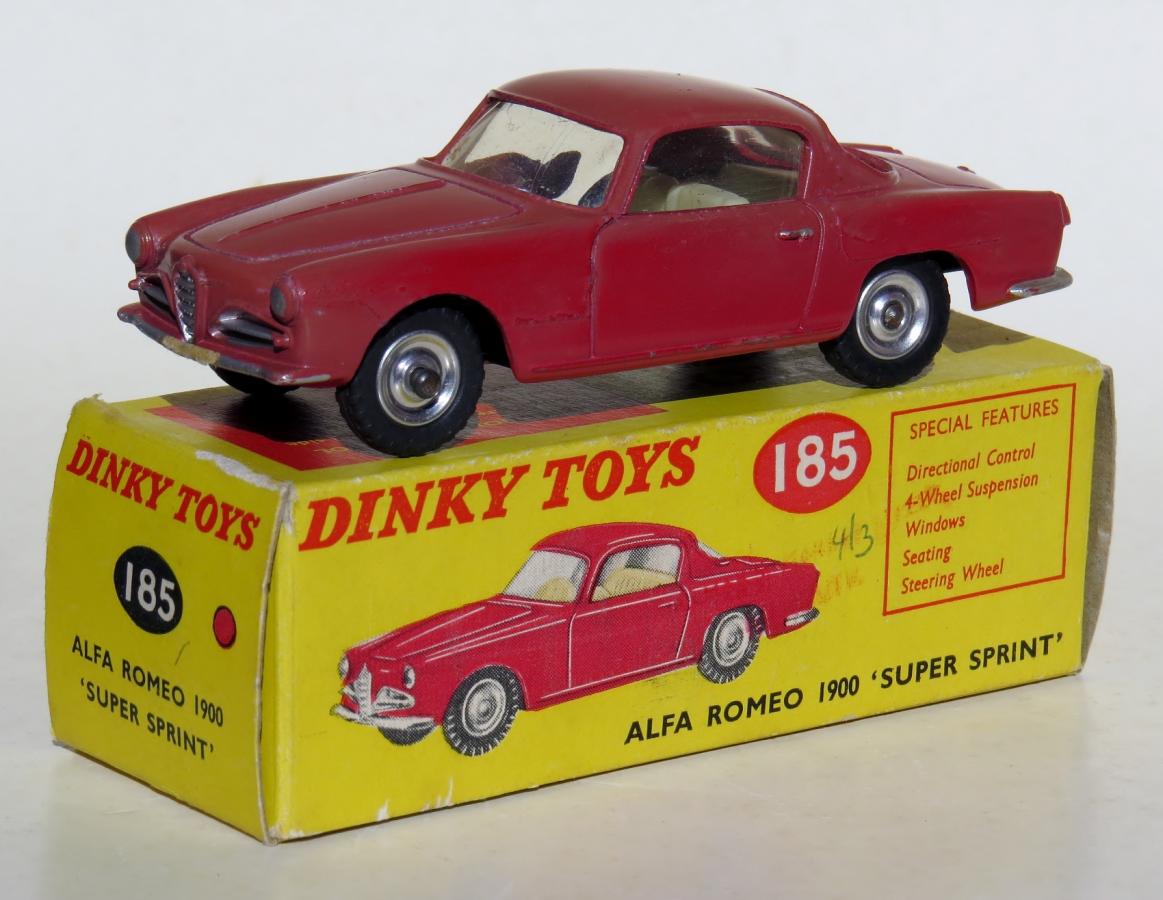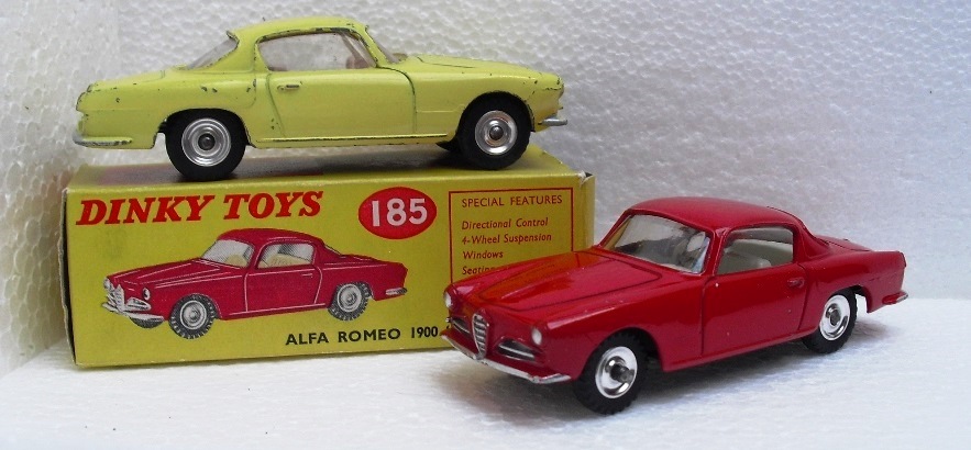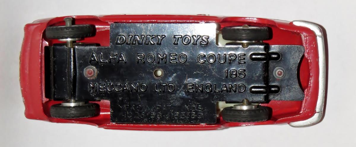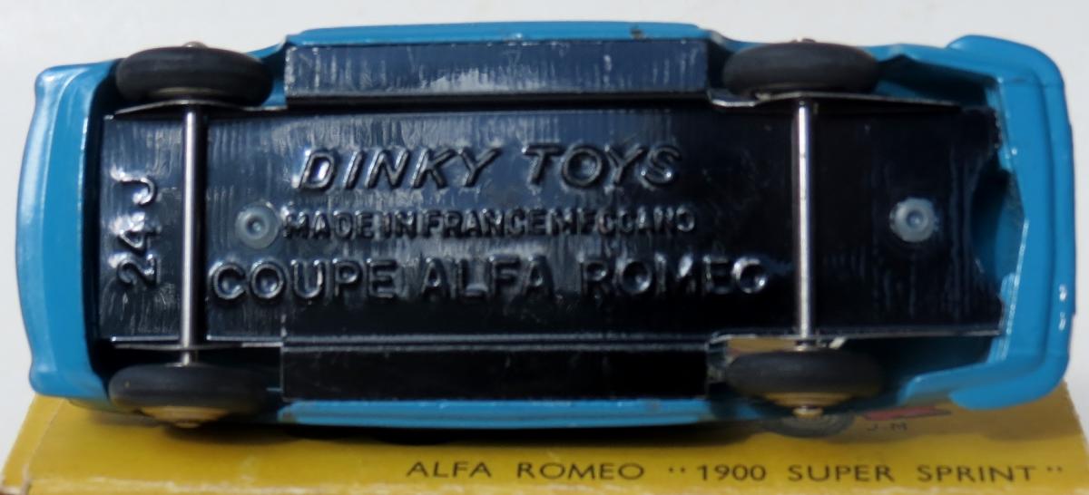 Richard A fine 'gaggle' of Alfa Romeo 1900 Super Sprints! It looks as if you are still 'on the hunt' for the red version with concave hubs! Not many of these have been sold in recent years, at least through Vectis, only five since 1999 with 12 blue examples boxed and unboxed during the same period so the red must be harder to find As can be seen below, my collection of Alfas is limited to the two versions from Liverpool and just the one 527/24j from France. I am also including the differences with their base plates. One thing is surprising is the unusual short production run for the British model of three years, with the French model being produced for four years, although the Alfa Romeo 1900 Super Sprint came out in a period when longevity in production became the exception rather than the norm. With both factories sharing the mould/die, production costs would no doubt have been shared and a slightly longer production period could have resulted in a greater profit in the long-term. One thing is interesting though - the difference in the location of the inverted commas with the British and French models on the packaging. Thank you for creating this Topic, Richard. I wonder if there are any variations out there? Kind regards Bruce (150) 2016/09/13/975/1433