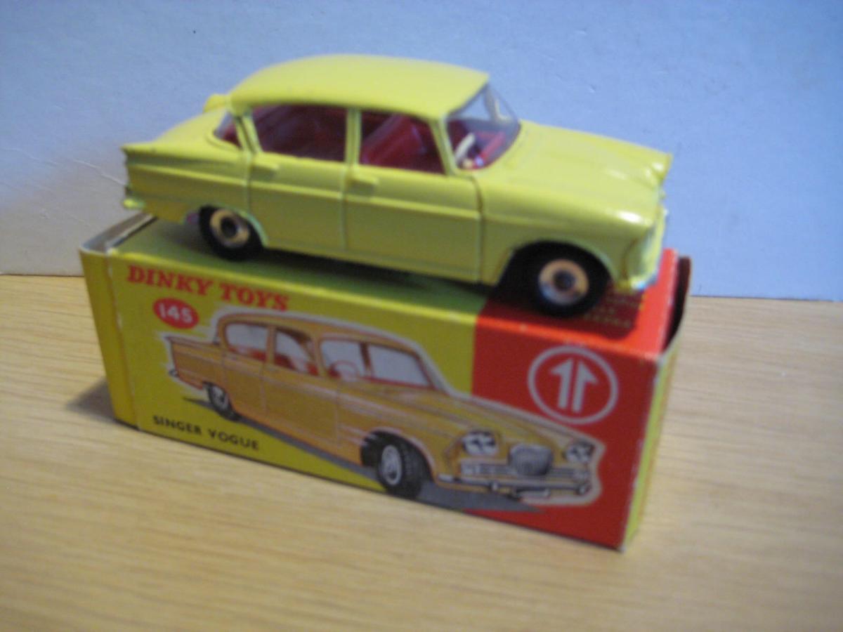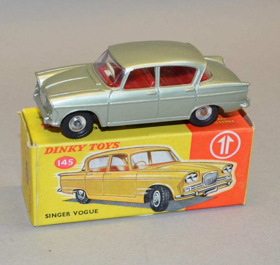 The Singer Vogue was a larger car than the Gazelle that Meccano had modelled with the 168 Singer Gazelle and like the earlier cars was a badge engineered version of the Hillman, being produced from the Coventry Plant of the Rootes Group in Ryton between July 1961 to 1966 The single headlight Hillman Super Minx was the base model, the dual headlight Singer Vogue the mid range and the Humber Sceptre, the top-of-the-range model. With the release of the Dinky Toys Vogue in December 1962, Dinky enthusiasts with all things coming from the Rootes Group stable had two modern replicas of the two Singer cars, Gazedlle and Vogue that were still in production.