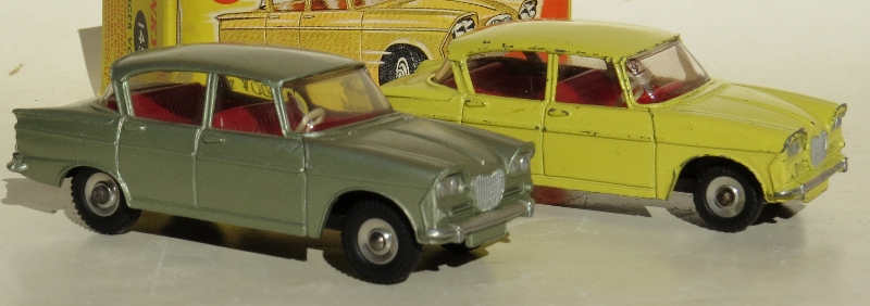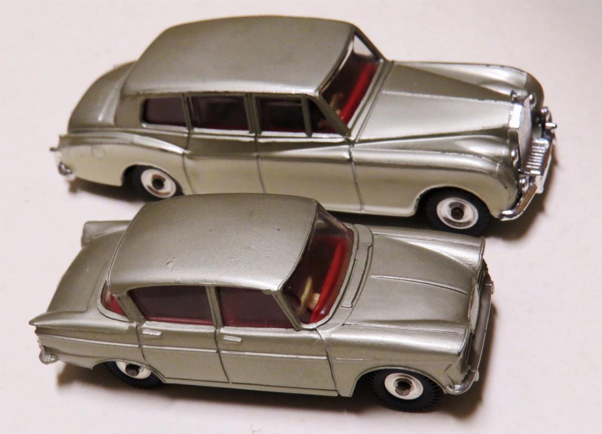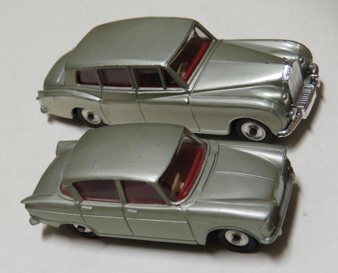 It was no doubt left to Meccano to select an alternative colour that was available within their stock, a colour that was similar to that used by the prototype and one that would satisfy Rootes. On examining the current range of Dinky Toys, a conservative colour and one that was already in use that would satisfy all concerned was found with the 198 Rolls Royce Phantom V that had been released a month earlier. The Phantom V was in a colour scheme of polychromatic green and gloss ivory. Polychromatic was an early terminology for metallic paint. And here was the final result; a colour that was synonymous with prestige!