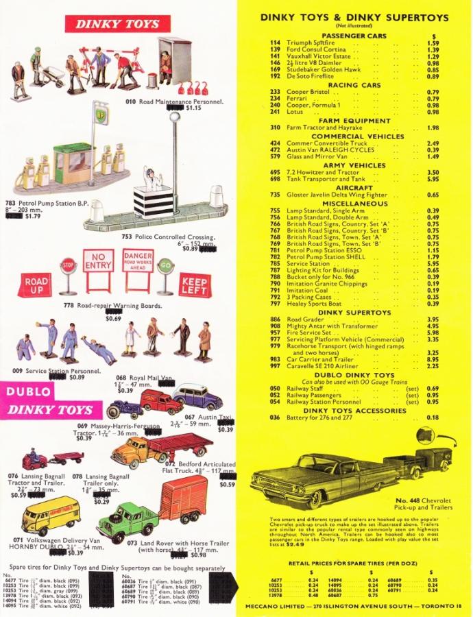 The 192 De Soto Fireflite remained in production until late 1963, when production ceased. It was listed in the Australian edition of the Meccano Toys of Quality price leaflet printed in March 1963. The price leaflet issued for the UK market also printed in March 1963 does not contain the 192 De Soto Fireflite. The difference can be explained by the distance and shipping time between the UK and Australia. However, the UK catalogue with a print code of 13/763/400 (July 1963) does list the 192 De Soto Fireflite with a price of 3/6. The model is not included in the first 1964 catalogue printed in January 1964 nor in the later Meccano Toys of Quality price leaflet printed in September 1964. The Canadian catalogue for 1963, printed in October includes the model as one of many not illustrated. Finally none of the 1964 catalogues available to me for both the UK and Australia include the 192 De Soto Fireflite, so with that it can be asumed that production ceased before the end of 1963.