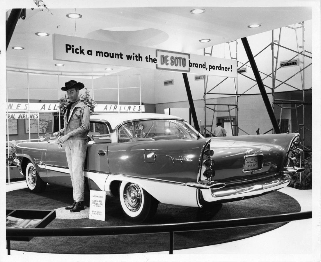 The showroom mimicking the magazine advertisement! The 1958 economic downturn hurt sales of mid-priced makes across the board, and De Soto sales were 60 percent lower than those of 1957 in what would be De Soto's worst year since 1938. The sales slide continued for 1959 and 1960 and rumors began to circulate De Soto was going to be discontinued.