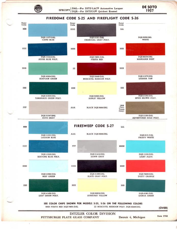 With Dinky having selected the two main De Soto colours of grey and light blue, although I would call this more of a turquoise-green, these colours almost matched those referred by De Soto as Dove Grey and Seafoam Green as shown with the De Soto colour chart below.