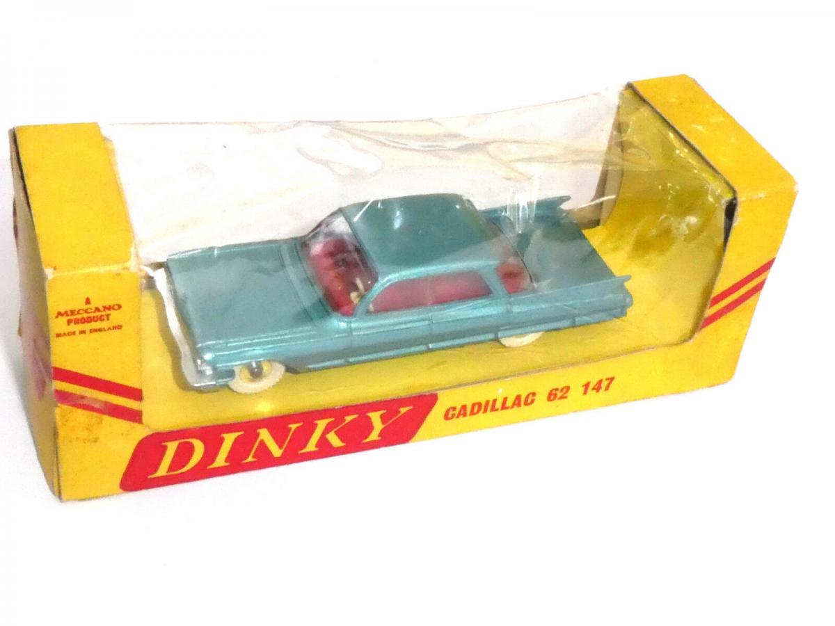 Regarding the Dinky 147 replica of the 1961 Cadillac Series 62 Sedan, I don't mean to 'pile on' regarding how this model was crafted, but I have my own 'complaints' about the casting to offer. If you examine the rear tailfin, it appears that the start of the fin on the rear doors was molded taller than the point where the fin continues on the rear fender. In other words, instead of a smooth incline, you have a step down where the fender fin starts resulting in the fin appearing to be out of alignment. Also, what scale is this model? On an over-all basis, the Dinky 147 Cadillac 62 appears to be rather under-sized when compared to comperable automobiles in the Dinky series (at least to me). And I agree that the 'greenhouse' appears to sit rather too tall and out of proportion to the model's body. I am not a fan of the colors used by Dinky to paint this model. I suppose the 'polychromatic' paint was intended to convey a rather 'rich' look to this luxury car, but the choice of colors is off. It was painted polychromatic green and another version in blue. In my opinion, the shades are just too close and don't stand out distinctively from each other. Offering this model in silver or in white would have made the model stand out. I do prefer the white interior over the red. I have only seen the white interior with green exterior paint; does anyone have an example in blue with white interior? One other thing, the 1963 Dinky catalog mistakenly illustrates Dinky 147 as a 1962 Cadillac 62; Dinky modelled the 1961 Cadillac 62 as Dinky 147. Finally, I also agree that the model's wheel track is too narrow on this casting. In summary, whoever oversaw the addition of this model to the Dinky product line unfortunately 'botched' the assignment. Dinky should have done much better with adding a 1960s era Cadillac to the series!