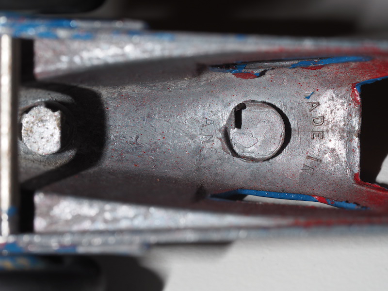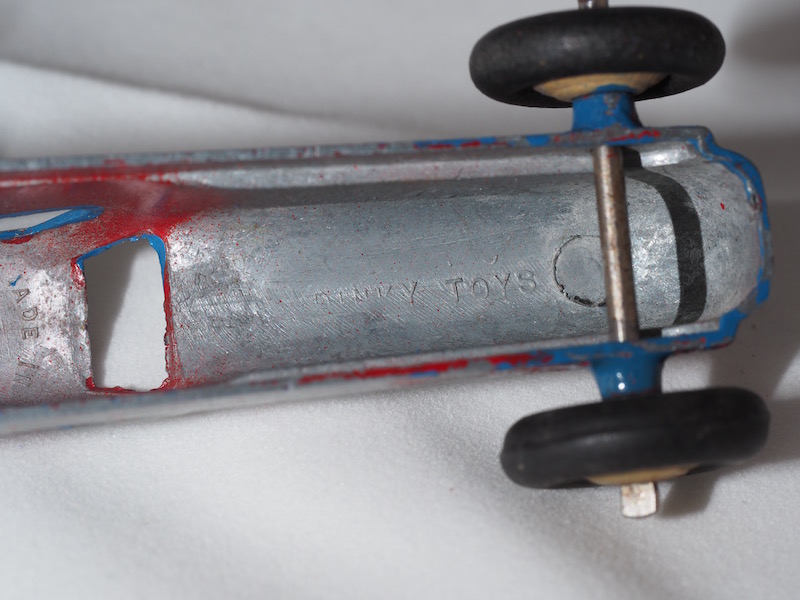 I found this Dinky on auction. It was repainted in beautifull blue, I presume the original colour of the original car, the Renault Nervasport land speed record car. I carefully chipped off the blue, but quite impossible to remove all. Any suggestions on further removing the blue paint? Is the red colour the original colour? Does this car belong to the 23 family? Apart from the Dinky Toy mark is says 'Made in' and then nothing but must be UK? I assume pre war. Is this a bit of a mistery car?Thanks! Bas