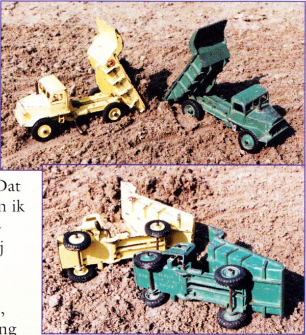 Dear fellow DTCAers, Browsing through some older Auto in Miniatuur magazines these days, I found the accompanying photos in issue 1999:4 page 19. The comment is that a Dutch collector found the green version (shown on the right) on a swap meet and he says to be certain that it is not a repaint. He, nor anyone else, has ever seen anything but the familiar yellow one. Of course the readers were invited to comment. But I have not seen any comment since this publication, so I think it would be useful to pass this question over to this forum. Could an authentic green one have been produced? When asking this I have in mind the Diecast Collector Obscure Corner contribution in issue 76 of February 2004. There, a real one is shown on page 83 with although apparently restored a dark greenish finish. Could this green Dinky Euclid have ever been a special miniature model order for a firm using original green Euclids in the past? I look forward to your comment! Kind regards, Jan Werner