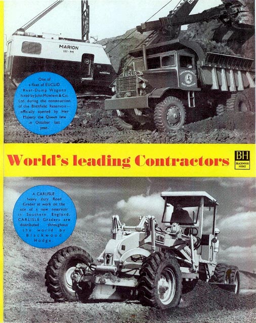 In the years following the end of the Second World War, Britain pioneered equipment rental, and one such company that later established branches all over the world, was Blackwood Hodge. This company that had been importing agricultural machinery was appointed the agent of the Euclid Road Machinery and set about developing a large facility in Northampton, from which to sell, hire and service Euclids large earth-moving equipment, in particular the Euclid R-15 Rear Dump Truck. Blackwood Hodge commenced exporting large quantities of Euclid R-15 rear dump trucks to many countries including Angola, Iraq and Saudi Arabia. In Australia the company established offices that handled the importation of the products from the Scottish plant which later handled the purchases of Euclid products, in particular tghe Euclid R-15 made by Mary Kathleen Uranium Mine in Queensland and the Snowy Mountains Authority in New South Wales. On the domestic front, many smaller quarry and construction companies could not afford to purchase large equipment such as the R-15, until Blackwood Hodge brought affordability into the equation by setting up a division that hired out earthmoving vehicles, in particular the R-15. The division was called Euclid Wagon Hirers Ltd.