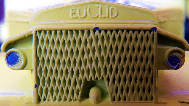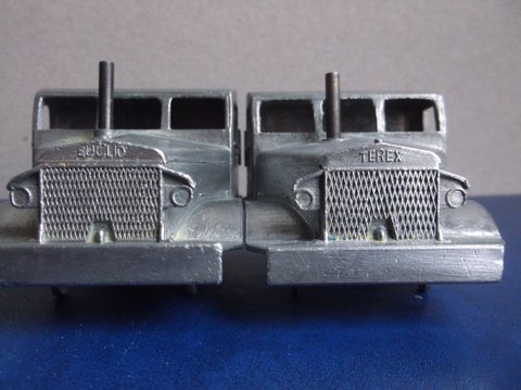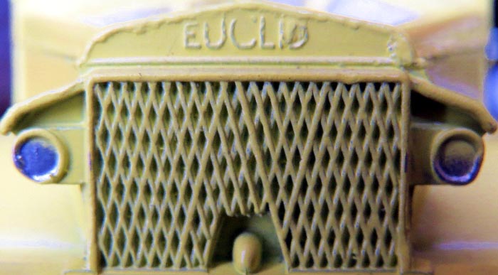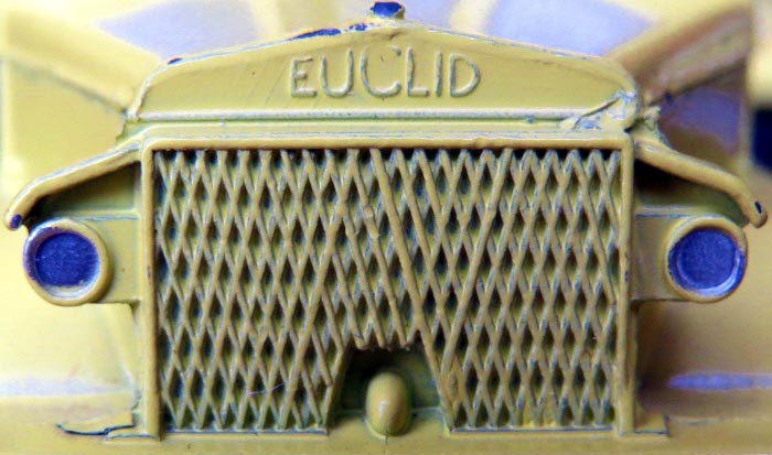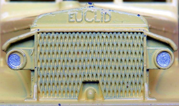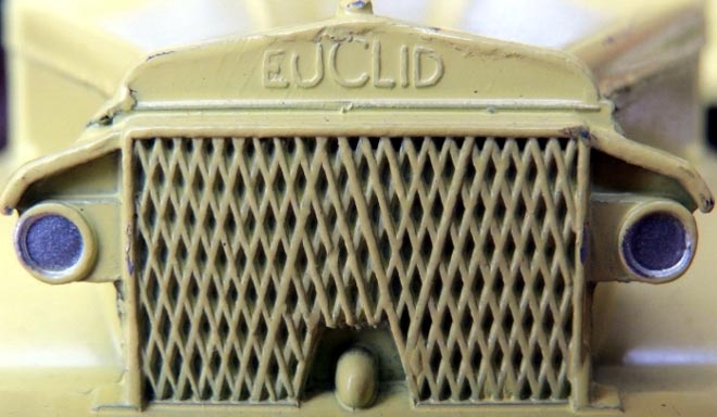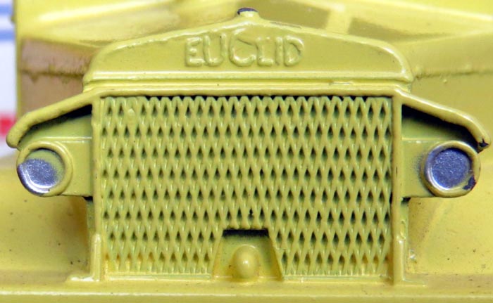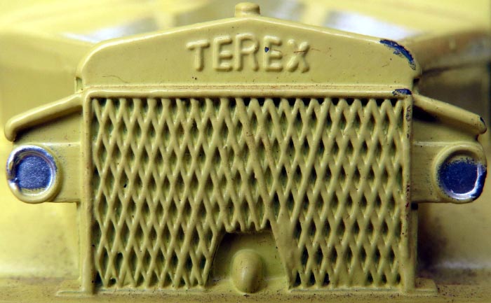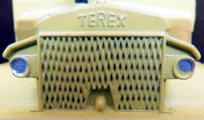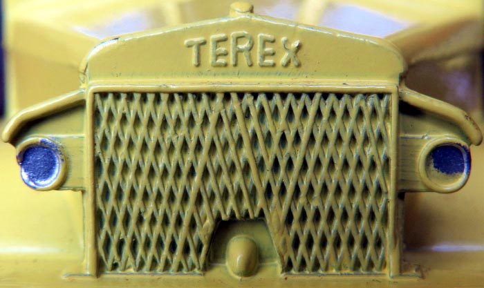 It was not possible to change the Euclid marking into Terex, the whole front of the truck (radiator, headlights, bumper) is from a new part of the die. This explains why the grill is coarser on the Terex the die of which never got as worn as the Euclid because much fewer Terex were made.
