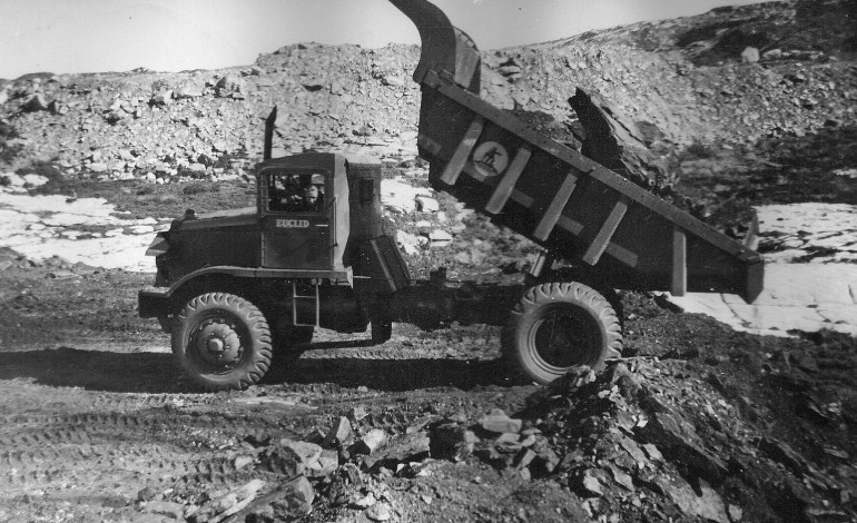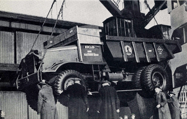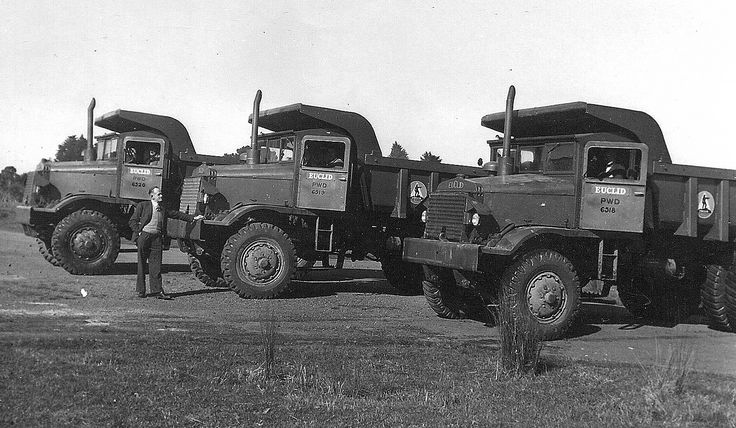 Jacques - Thank you for posting the photograph of a fleet of Euclid R-15s hard at work as weighing machines to test the strength of a bridge in France. Presume there is a bridge there somewhere! Hopefully you may uncover the rest of the sequence of pictures of this flock of tractors and R-15s actually on that bridge! To compliment Jacques' photograph, here are some further photographs of Euclid R-15s at work around the globe - from England and all the way down to New Zealand and Australia. Up first are two photographs of some of the Euclid R-15s that were imported into New Zealand from England on behalf of the Department of Public Works for use in various hydro-electricity projects. A total of 124 R-15s were imported from the late 1940s consisting of various models, 49FD, 82FD, B3FD, B6FD and B7FD, with the Rolls-Royce powered B6FD type being the most numerous. Many of these work-horses were still in operation into the 1970s, and indication of the strength that had been built into them by the manufacturer.