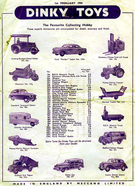 Dave Thanks for finding that additional info on the Delivery Van.....I think it is pretty clear that it was likely made from 1946 through 1951. The fact that it does not appear on the 1952 price list and is also not in the catalog would seem to indicate production had stopped. Obviously, there would have been stock already made available for purchase for some time after that. Those records also would seem to corroborate the fact that the 280 number was only a pre-war number, used due to the myriad 28 series vans made at that time. Post war, with only one version being made, it was simple to just revert to the original number, and the model was discontinued prior to Dinky assigning the newer numbering system in 1953/54. Terry