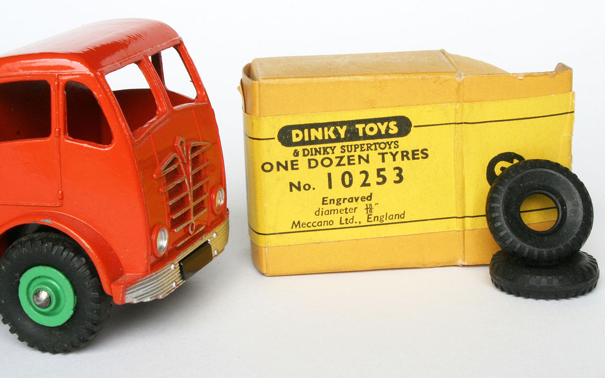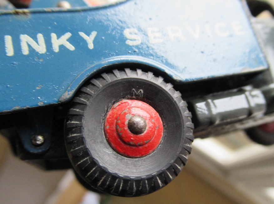 Richard The tyres on your dark grey and mid-blue Commer have been swapped over the years - they are not original and belong in the mid-1960s era. This model was always shod with the tyres as shown in the photograph above in Jan's Post. Here is a cropped image of one of five in my collection.
