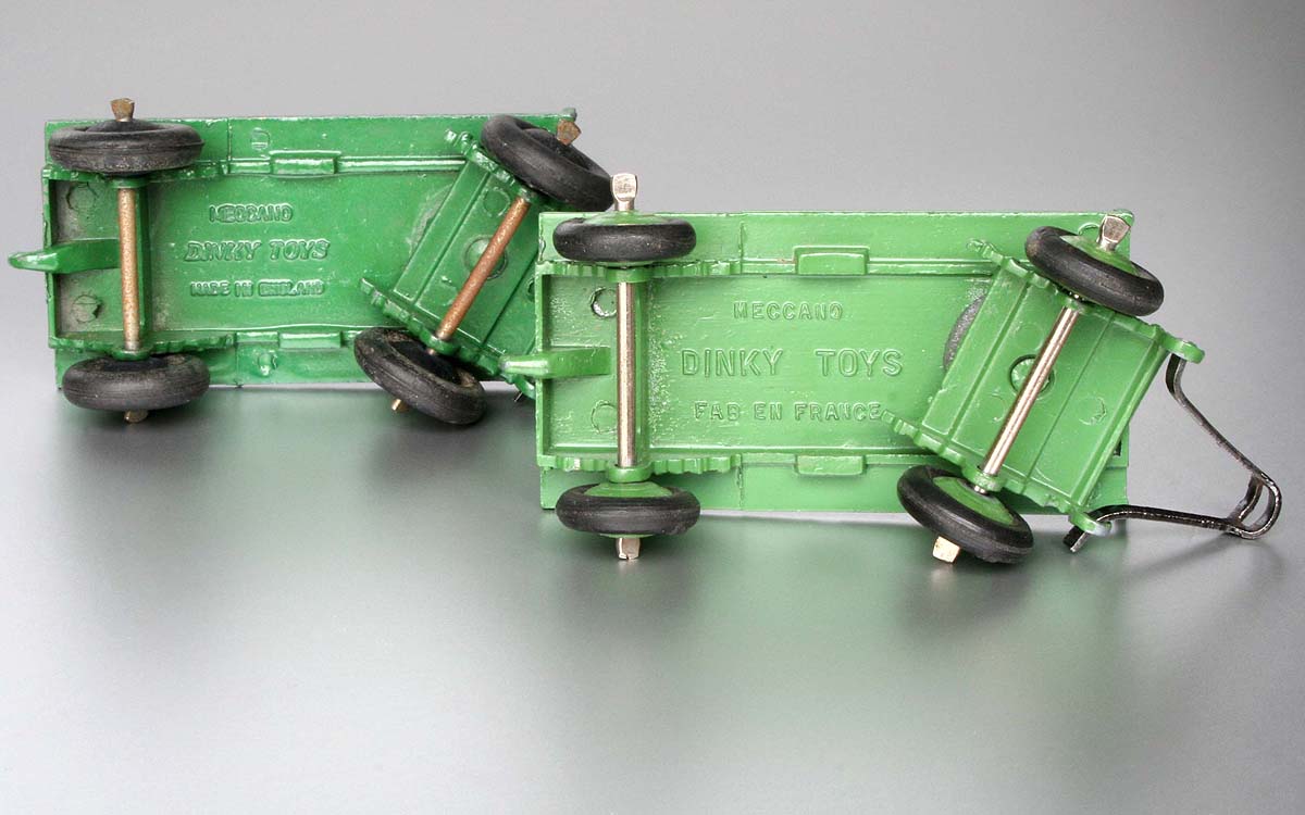 Nice to see the one with plastic hubs. The box seems quite correct to me. I included your picture in my image documentation, Ron, if you don't mind. Was this plagiarism by Micro Models or did they have a kind of deal with Meccano? I'll add another example of a 'look-alike' below, also from a different die, but from the same basic company. It is the early French 25G (in front), which deviates in tiny details only from the early British one. The cast-in text below is the most obvious difference. Kind regards, Jan