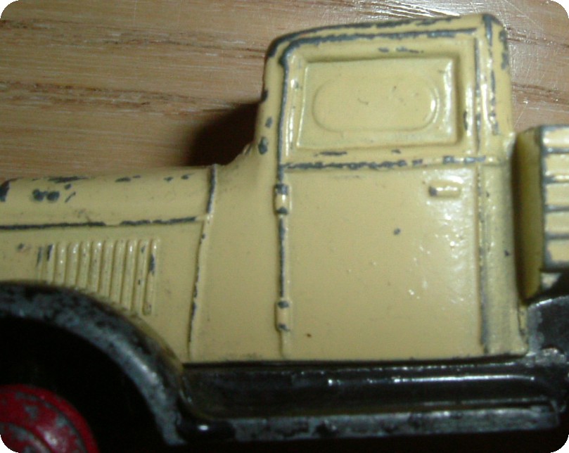 We have seen that one come along indeed some years ago. A remarkable example. Obviously the die did not work properly. By the way, this is a 25a Wagon, with it red wheels probably a type 4. Kind regards, Jan